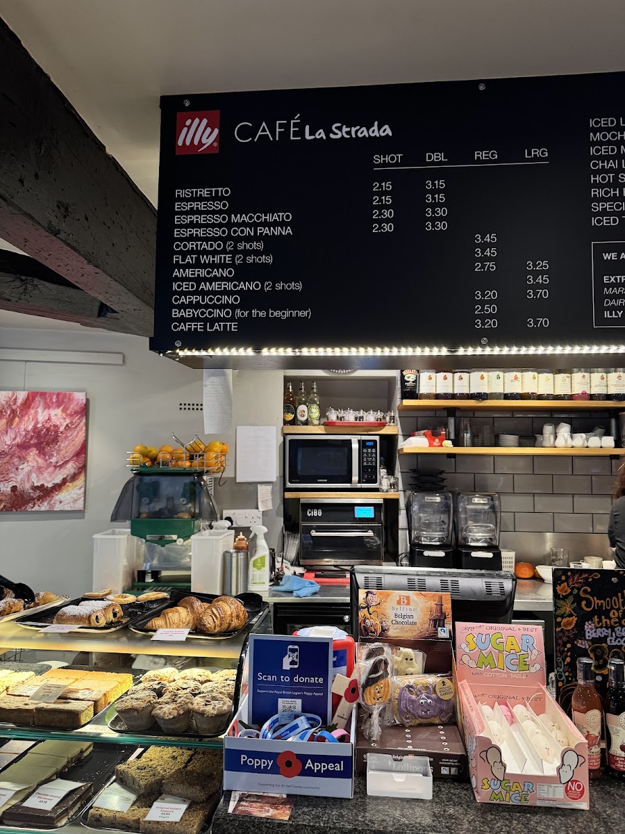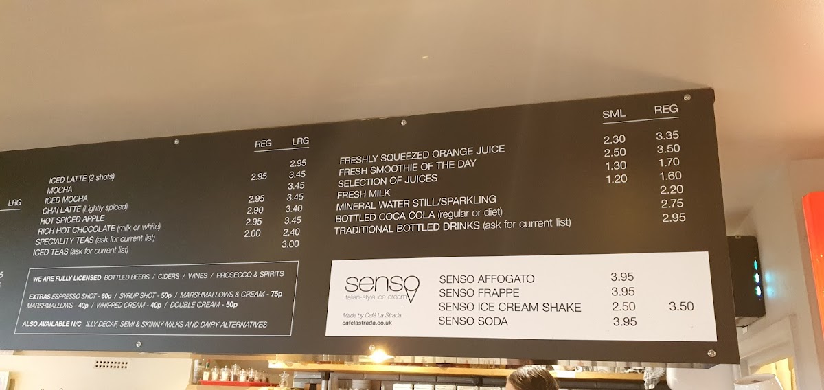 The drink menu at La Strada is just as varied, with refreshing options like Prosecco, Peroni, and Moretti for those looking to enjoy a drink with their meal. If you prefer cider, they have Lilleys Cider available. For coffee enthusiasts, the menu includes favorites like Iced Latte, Mocha, and Iced Mocha, along with comforting beverages like Chai Latte and Hot Spiced Apple to keep you warm on cooler days.